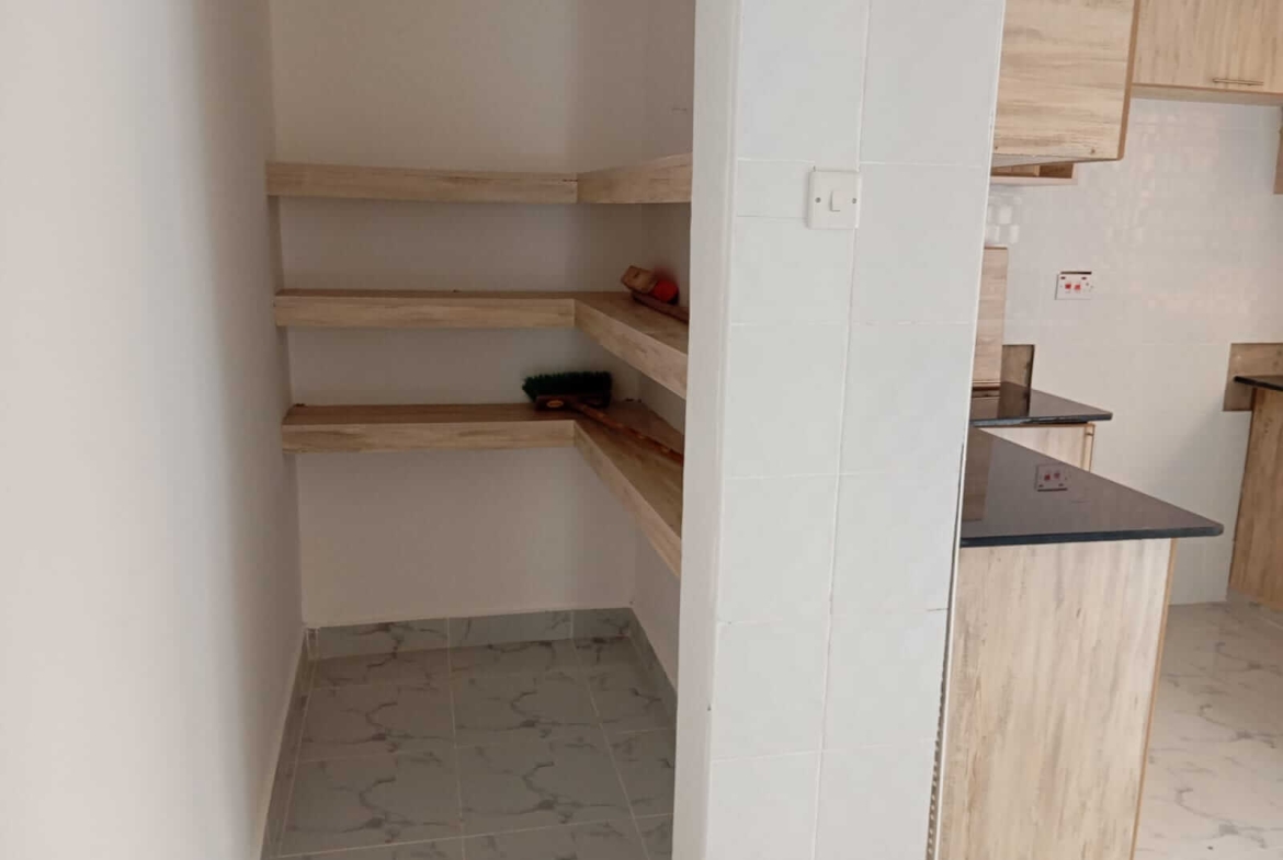 This is a very spacious newly built 3 bedroom with a SQ. It sits on an 1/8 and has an individual freehold title deed. It is a corner house in a serene and secure gated community of ten units. The cabro driveway and parking on going. On sale ksh 8.8m.